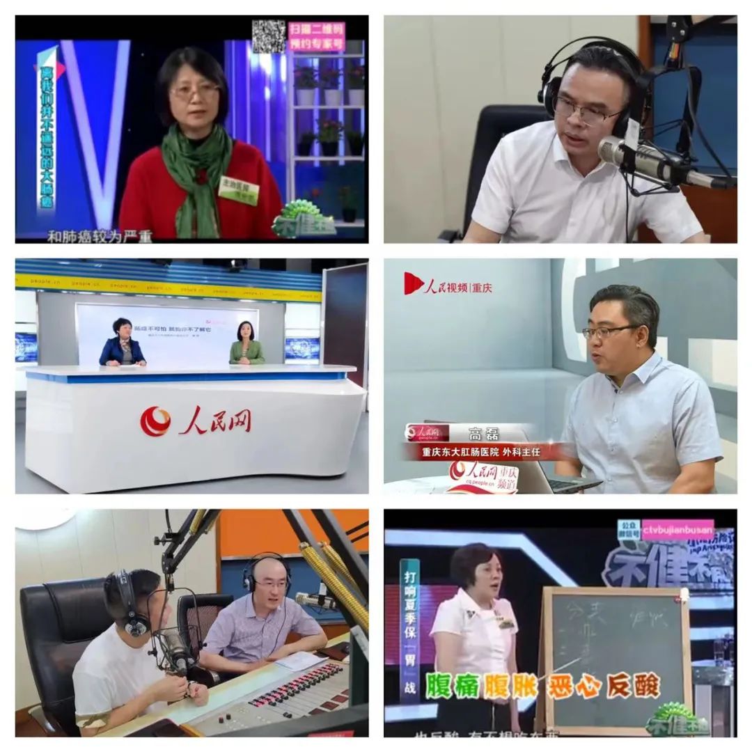 多年来,不断受邀做客人民网、重庆电视台《不健不散》、重庆都市广播FM93.8《午夜星空下》栏目,参与人物专访、节目录制、在线访谈,深受广大市民朋友喜爱,医院影响力持续扩大。